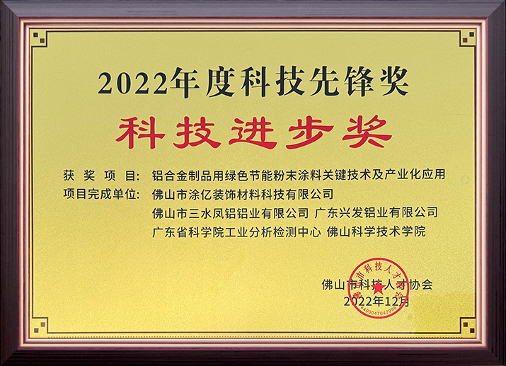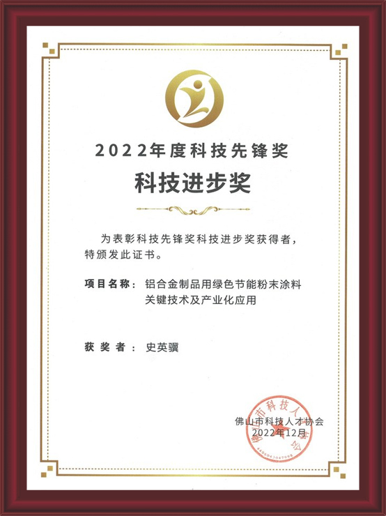 科技进步奖《铝合金制品用绿色节能粉末涂料关键技术及产业化应用》
