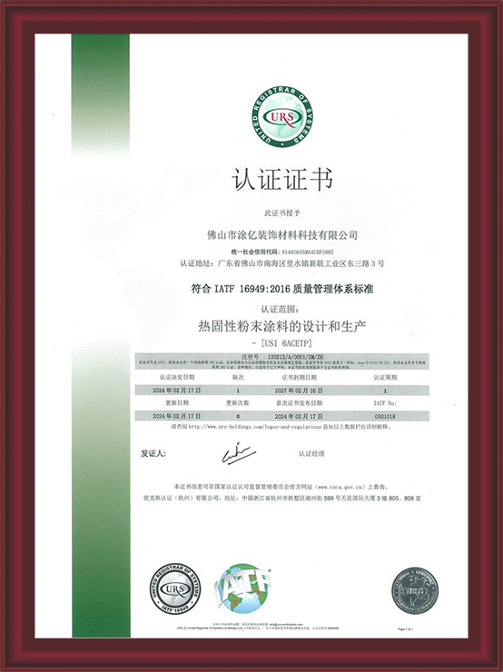 IATF 16949:2016 质量管理体系标准(热固性粉末涂料的设计和生产)