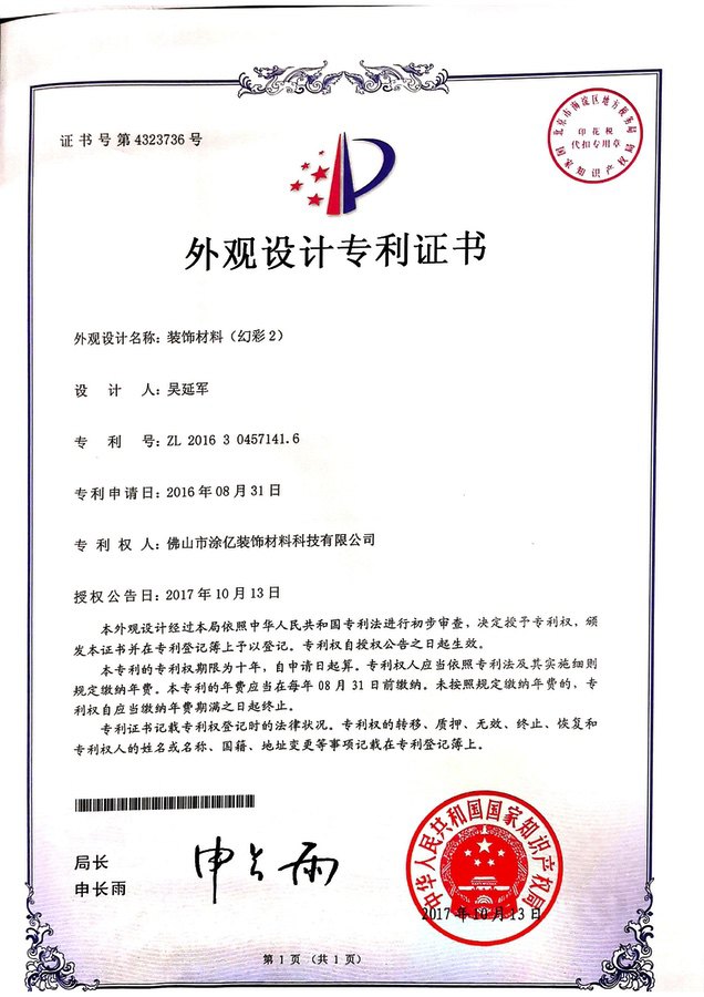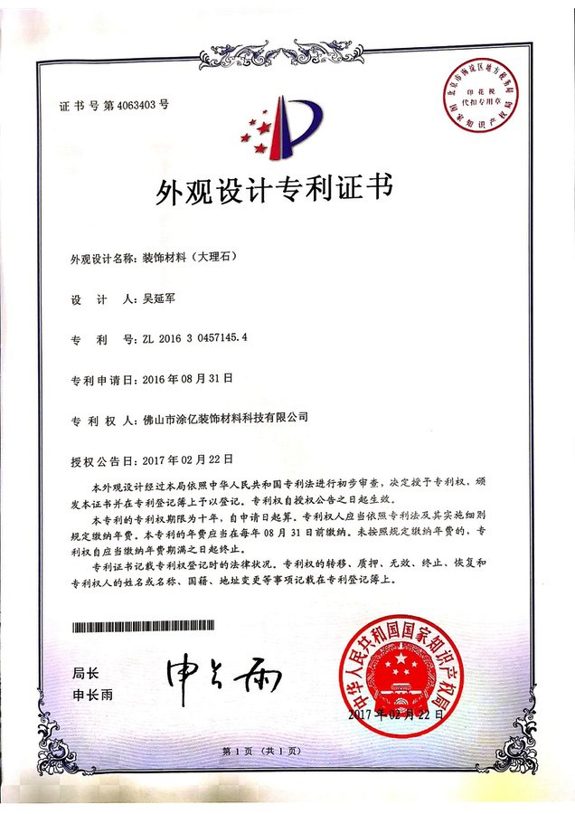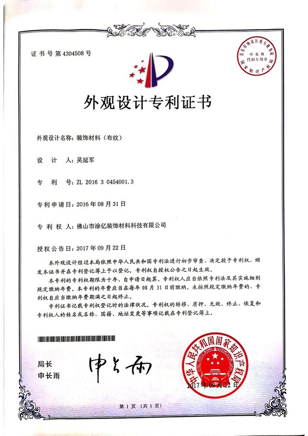 外观设计专利证书